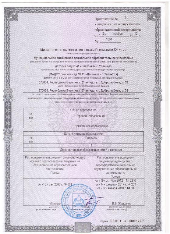 ПРИЛОЖЕНИЕ 1 К ЛИЦЕНЗИИ НА ОСУЩЕСТВЛЕНИЕ ОБРАЗОВАТЕЛЬНОЙ ДЕЯТЕЛЬНОСТИ (скачать) (посмотреть)