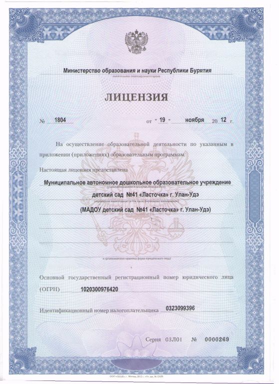 Муниципальное автономное дошкольное образовательное учреждение детский сад № 41 "Ласточка" г. Улан-Удэ